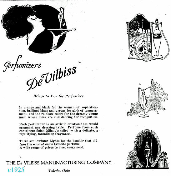 Az első világháború után a DeVilbiss parfümpermetezők atomizerek és illatosítók gyártása megnőtt – köszönhetően az USA-ból, Csehországból, Franciaországból, Nagy-Britanniából származó gyönyörű parfümös üvegpalackoknak és a japán porcelánoknak, melyekre a permetező készülékeket szerelték.